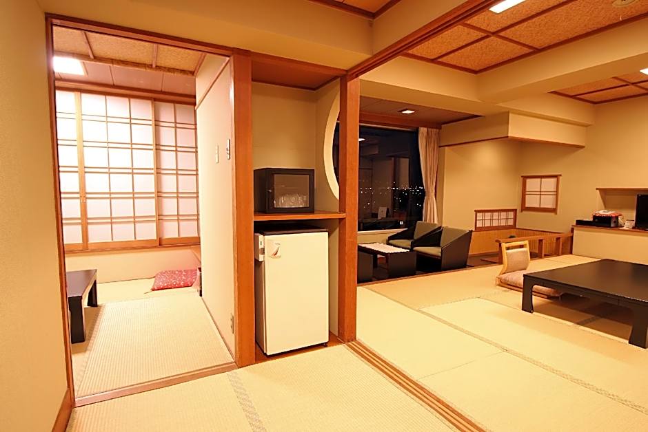 The quadruple room features air conditioning, tatami, as well as a private bathroom boasting a bath and a shower. The unit has 4 futons.